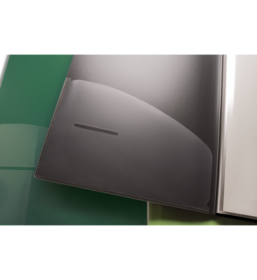 Wyjątkowo gruba i sztywna okładka doskonale chroni dokumenty przed zniszczeniem. Podręczna, wewnętrzna kieszonka na wizytówki, płyty CD lub notatki. Antystatyczne koszulki otwierane od góry. Wysoka przezroczystość matowych koszulek. Wykonany w ponad 50% z materiałów przetworzonych.