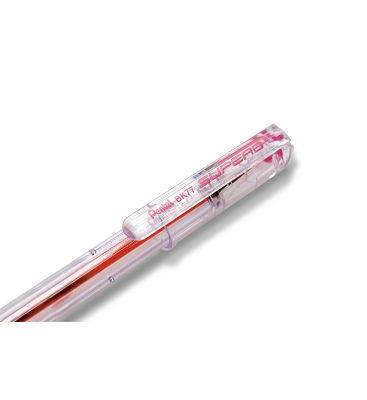 Klasyczny i bardzo popularny długopis Pentel BK77 SuperB, słynący ze swojej niezawodności. Gładko pisze, nie przerywa, nie brudzi i nie pozostawia kleksów. Posiada bardzo długą linię pisania wynoszącą prawie 2 km. Przezroczysta obudowa. Nasadka posiada silikonową kulkę zabezpieczającą wkład przed wysychaniem. Stożkowa nakrętka wykonana z mosiądzu. Końcówka 0,7mm wykonana z "niklowanego srebra". Idealny do codziennego pisania i bazgrania. Na wkład wymienny BKL7. Obudowa posiada wytłoczony prążkowany, zawierający 50 nacięć uchwyt poprawiający jakość pisania.