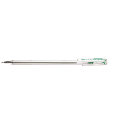 Klasyczny i bardzo popularny długopis Pentel BK77 SuperB, słynący ze swojej niezawodności. Gładko pisze, nie przerywa, nie brudzi i nie pozostawia kleksów. Posiada bardzo długą linię pisania wynoszącą prawie 2 km. Przezroczysta obudowa. Nasadka posiada silikonową kulkę zabezpieczającą wkład przed wysychaniem. Stożkowa nakrętka wykonana z mosiądzu. Końcówka 0,7mm wykonana z "niklowanego srebra". Idealny do codziennego pisania i bazgrania. Na wkład wymienny BKL7. Obudowa posiada wytłoczony prążkowany, zawierający 50 nacięć uchwyt poprawiający jakość pisania.