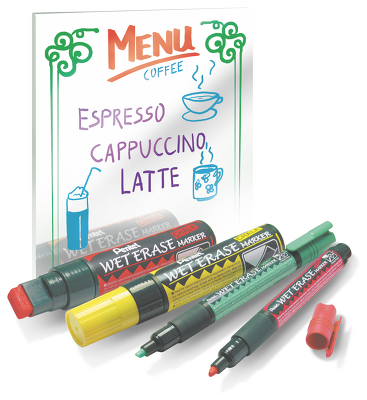 Marker kredowy z grubą końcówką. Produkt wybierany przez restauratorów (do ekspozycji menu), przedsiębiorców, właścicieli barów, sklepów i komisów samochodowych. Tusz po wyschnięciu jest odporny na lekkie opady deszczu. Idealny do wykonywania ozdób i dekoracji świątecznych na szkle i szybach. Dostępny w 8 kolorach tuszu: czarnym, czerwonym, niebieskim, zielonym, pomarańczowym, żółtym, fioletowym, białym.