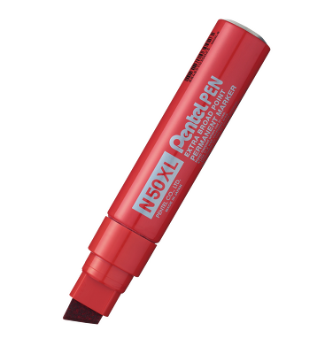 Marker permanentny z wyjątkowo grubą, ściętą końcówką, która pozwala na pisanie wyraźnych liter, znaków oraz symboli. Idealny do prac magazynowych, opisywania kartonów, tworzenia plakatów, banerów. Obudowa aluminiowa. Wytrzymała filcowa końcówka, odporna na dociskanie do powierzchni. Odpowiedni na większość podłoży tj. karton, metal, drewno, plastik czy szkło.