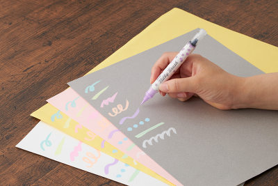 Idealnie sprawdza się na jasnych i kolorowych papierach.