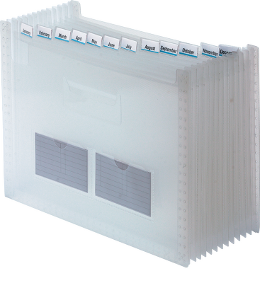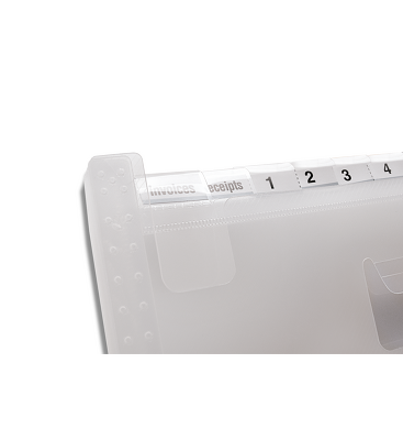 Posiada 13 kieszeni. Zawiera wydrukowany indeks ułatwiający organizację dokumentów.