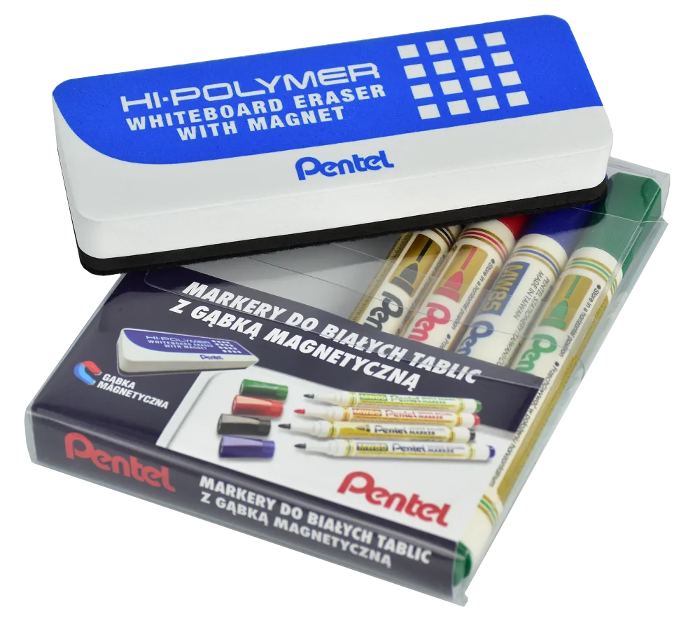 Zestaw 4 ekonomicznych markerów + gąbka magnetyczna